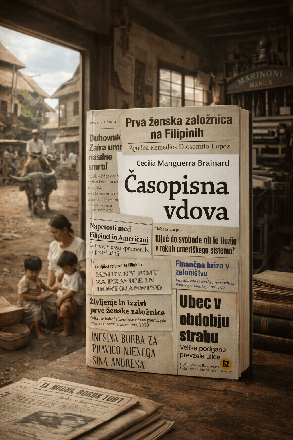 Navdihnjena z življenjem svoje prababice, prve ženske založnice na Filipinih, je avtorica Cecilia Manguerra Brainard ustvarila zgodbo o vdovi Ines Maceda, ki leta 1909 prevzame moževo tiskarno v živahnem Ubecu. V času velikih družbenih sprememb se Ines sooča z izzivi v družini, podjetništvu, predvsem pa si želi neodvisnosti. Bralci jo spoznamo ob tiskarskem stroju, s prsti, umazanimi od črnila – kot simbolom odločnosti in vztrajnosti. Roman prepleta resnično zgodovinsko ozadje z izmišljenimi dogodki in liki in nas popelje v svet, prežet s strastjo, vztrajnostjo, pa tudi z življenjskimi izgubami in strahovi. Ob razkrivanju skrivnostnega zločina se pripoved osredotoča na glavno junakinjo, ki v času osebnih in družbenih prelomnic najde svojo moč in glas.